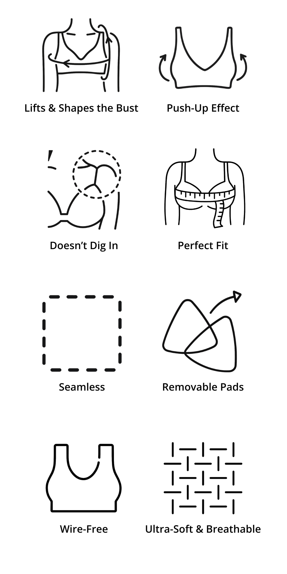 This bra was designed for women who want maximum comfort and unrestricted freedom of movement. Whether you wear it as an everyday bra, T-shirt bra, camisole bra, sleep bra, yoga bra, or for light sports—it adapts to your life.