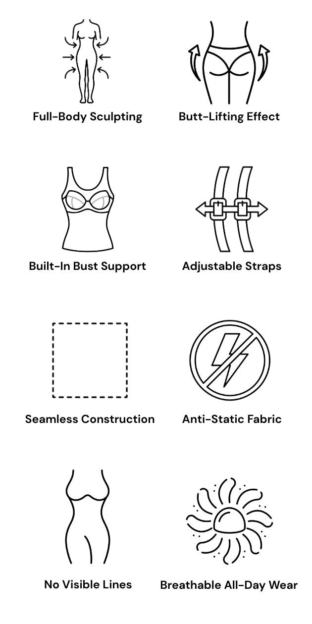 Full-Body Compression: Strategic shaping targets your waist, tummy, hips, and thighs simultaneously. No layering multiple pieces—one shaper handles everything.